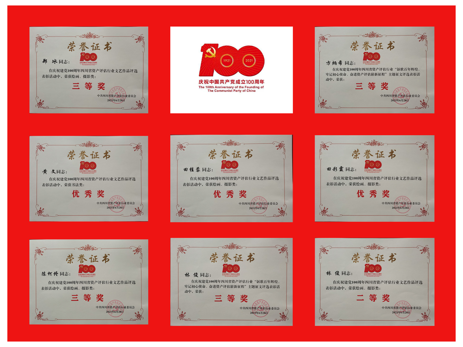 为庆祝中国共产党成立100周年,扎实开展党史学习教育,抒发我省资产评估行业从业人员对党的深情厚爱,歌颂党、歌颂祖国和歌颂资产评估事业,中共四川省资产评估行业委员会印发了《中共四川省资产评估行业委员会关于开展“讴歌百年辉煌、牢记初心使命、奋进资产评估崭新征程”主题征文活动的通知》(川评行党〔2021〕11号)和《中共四川省资产评估行业委员会关于开展四川省资产评估行业庆祝建党100周年文艺作品征集活动的通知》(川评行党〔2021〕12号),决定组织开展“讴歌百年辉煌、牢记初心使命、奋进资产评估崭新征程”主题征文和文艺作品征集活动。全省资产评估行业从业人员积极创作了一批好的文学艺术作品,经过专业评委认真评选,现将评选结果通知如下:
